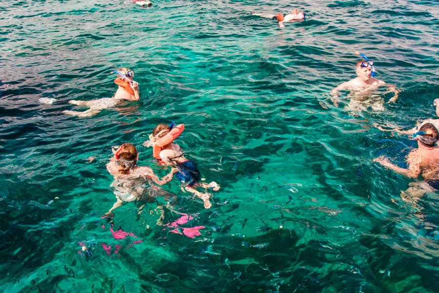Relax with a range of alcoholic and non-alcoholic refreshments while listening to the waves breaking on the shore or snorkeling near the beach. Then unwind and take in the breathtaking view. Before returning to your hotel, enjoy light refreshments and music during the boat rides back to the marina.