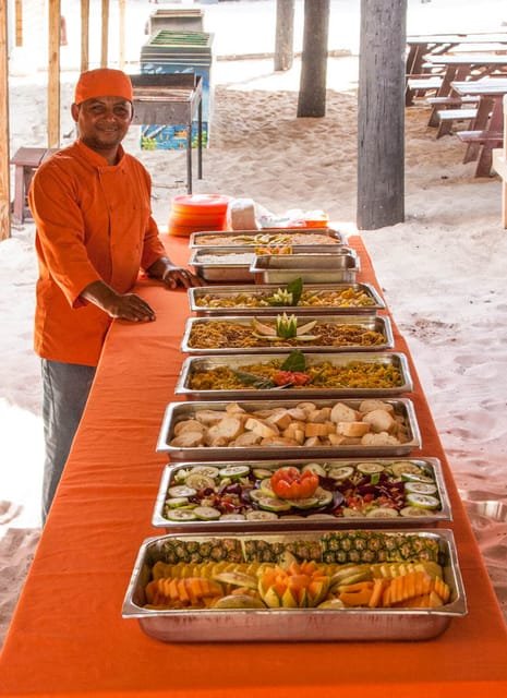 After snorkeling, head to the west side of Catalina Island, where you’ll be taken to a private beach for a Dominican feast prepared by our chef. If you choose the VIP package, you can savor fresh fish caught that morning, along with pork, chicken, salads, pasta, and local fruits for lunch.