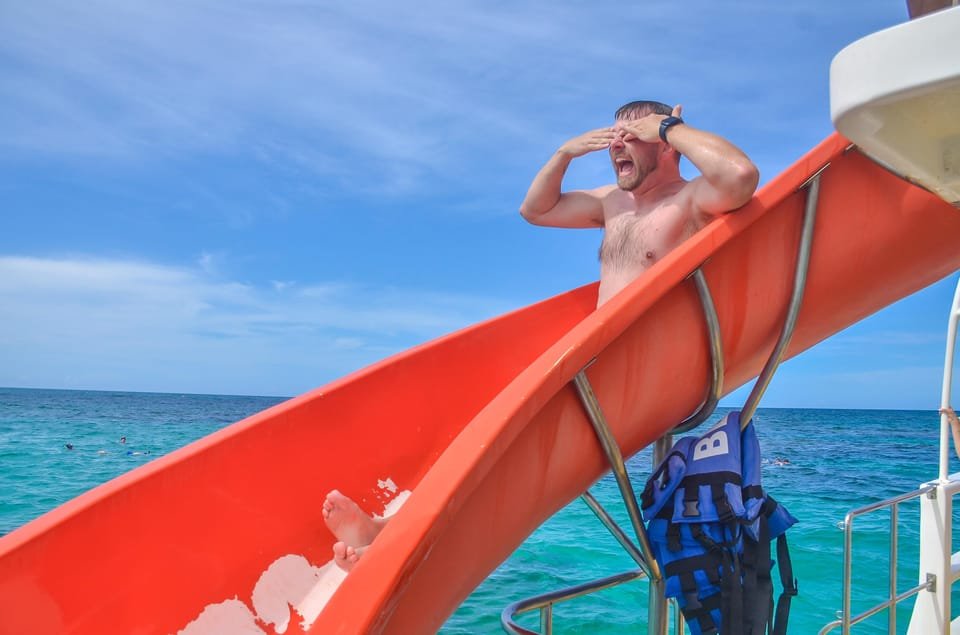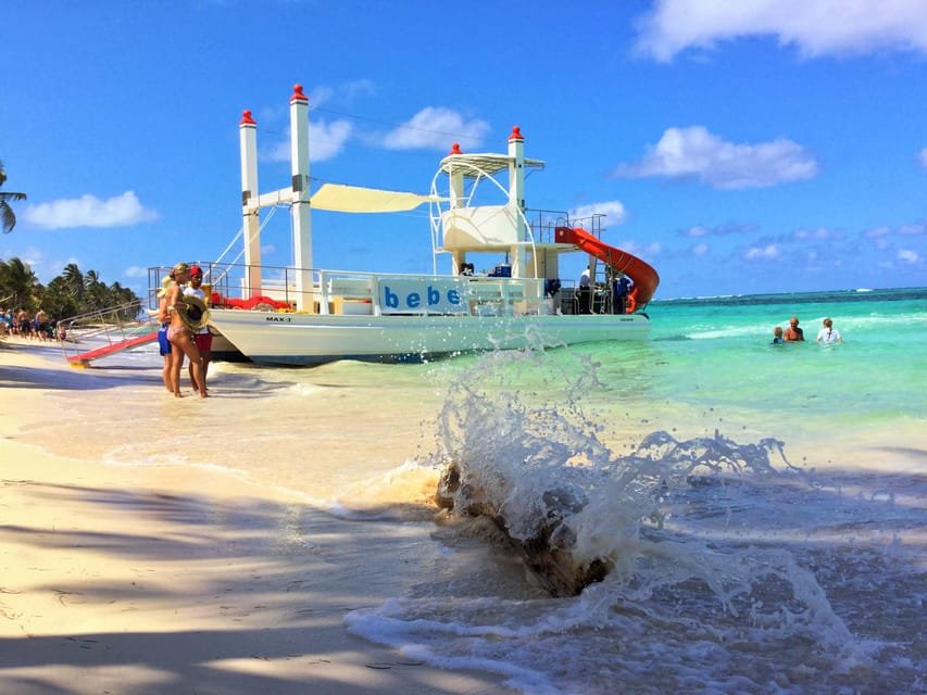 Punta Cana Private Slide Boats (Medium Group), You and your group will have an unforgettable experience aboard a spacious and comfortable catamaran, exclusively reserved for your enjoyment. As you sail along the stunning coast of Punta Cana, you’ll be treated to breathtaking views and soothing music. Upon reaching a protected area, you’ll encounter a mesmerizing coral reef. Our knowledgeable staff will provide a comprehensive briefing on how to use the snorkeling equipment and guidelines for a safe and enjoyable experience. You’ll also have the chance to experience the thrill of our exciting water slide.