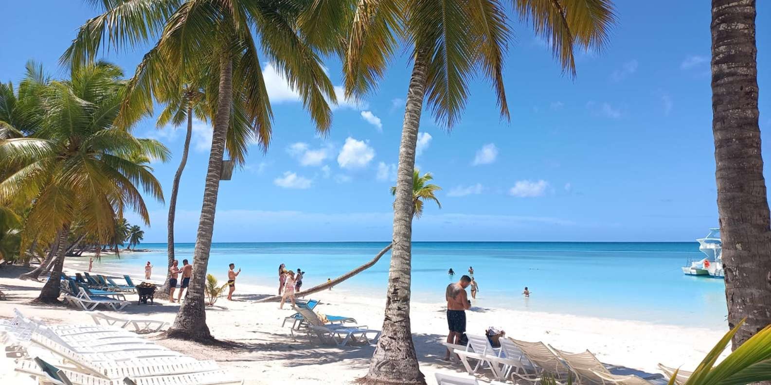 Make your first stop at the beautiful Fan Beach (Playa Abanico), one of the most beautiful beaches on Saona Island. Spend time resting your mind and body between palm trees and sun loungers, which invite you to dream of the sound of the waves.