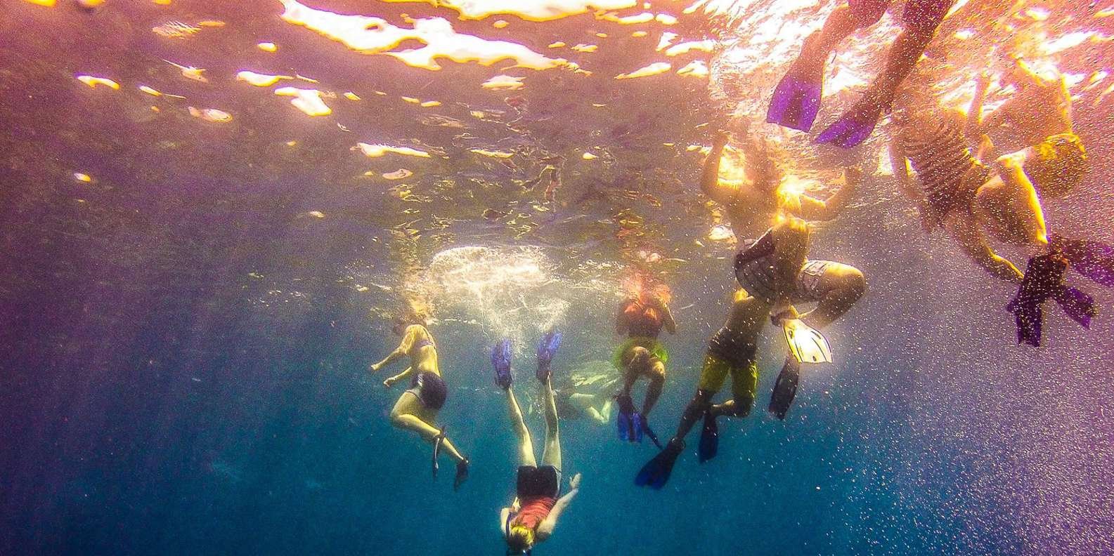 Snorkeling equipment Boat ride Experienced guides Beach visit on Catalina Island National Park admission to Catalina Island Dominican feast Drinks Round-trip hotel transfers Drop-off to cruise liner