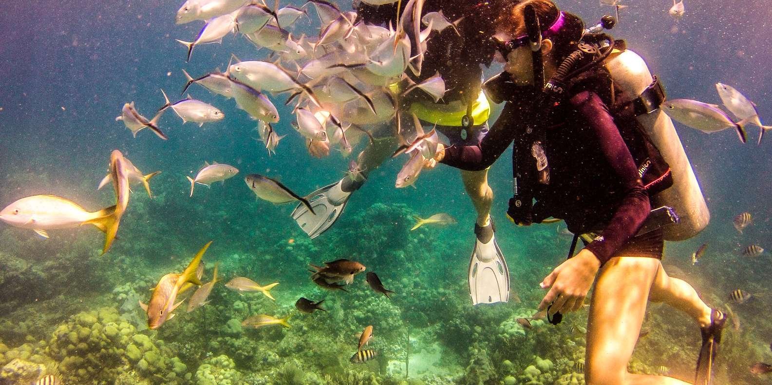 We arrive at our first dive site at around 10.30am, where you will enjoy just under an hour of diving to discover the true beauty of ‘The Wall’. You can expect turquoise waters, incredible visibility, a rich marine life and an amazing underwater ecosystem. Our dive team will be available to help guide you through the underwater paradise.