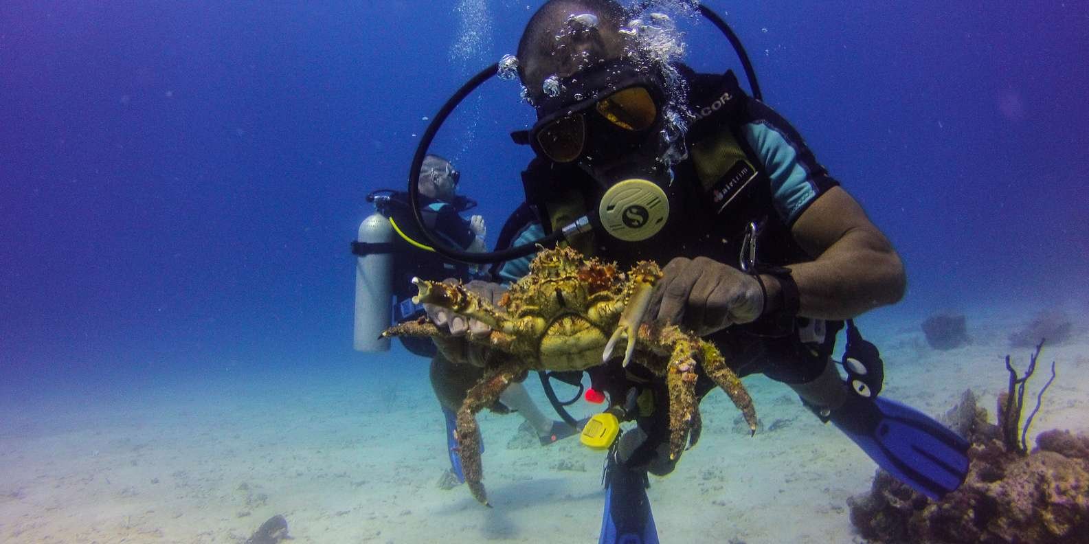 Our team will be waiting to welcome you aboard ‘Paradise’ with tropical refreshments. We will leave the marina at around 10.00am, setting a course for the east side of Catalina Island, to the first dive site known as ‘The Wall’, with depths from 5m (16ft) to 40m+ (131ft+).
