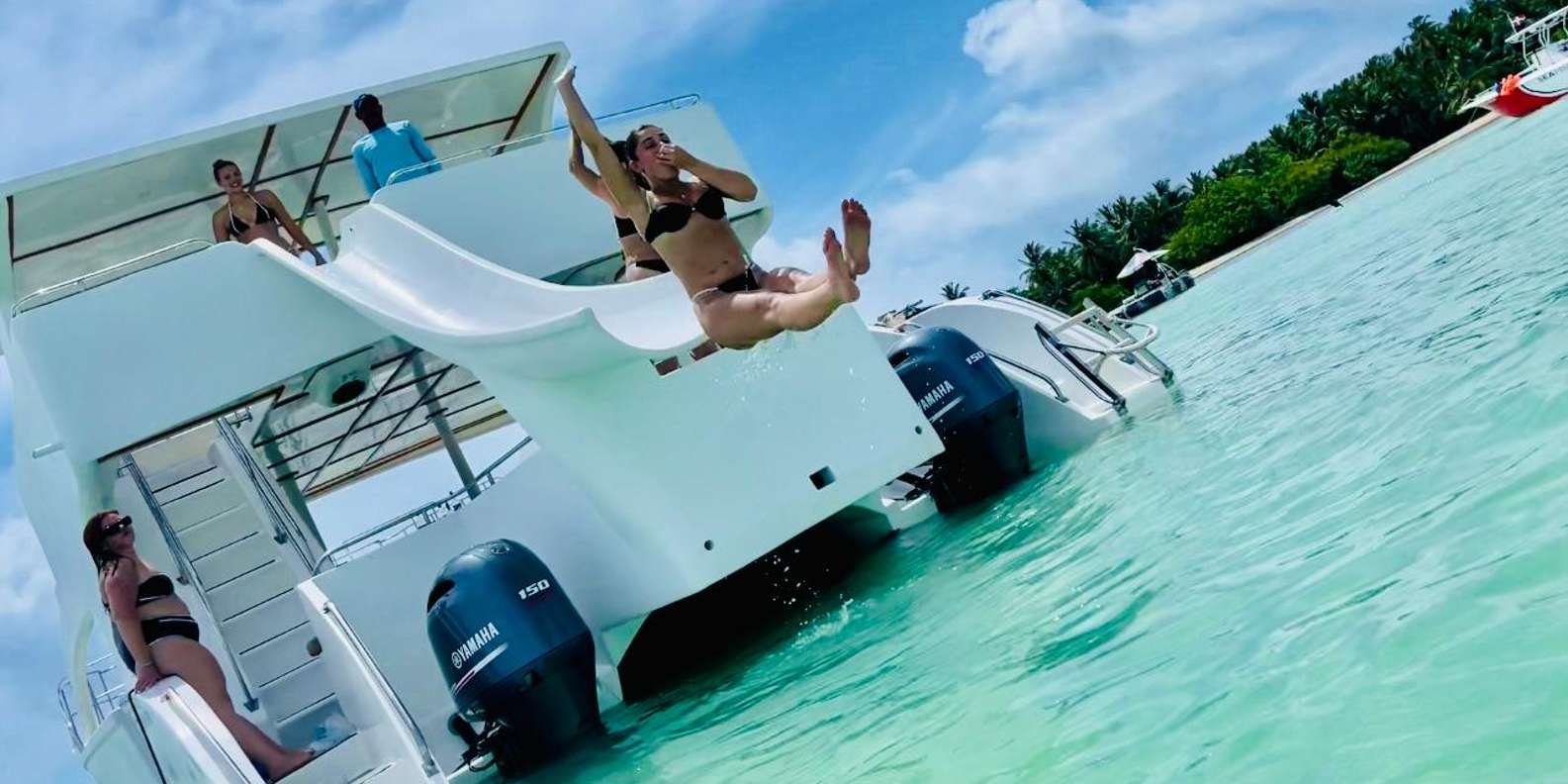 Imagine an exciting private catamaran excursion that will take you to discover the treasures of the Caribbean Sea on a 3-hour trip. On this exclusive tour, you will enjoy exciting slides directly from the catamaran into the crystal clear turquoise waters.