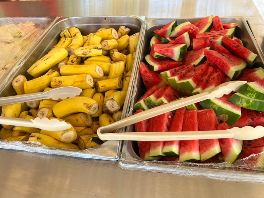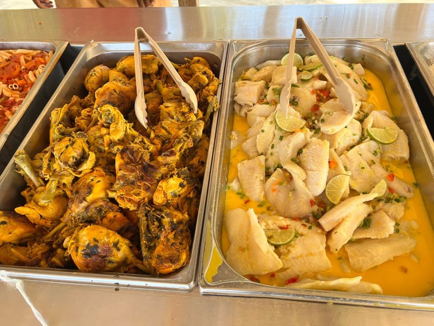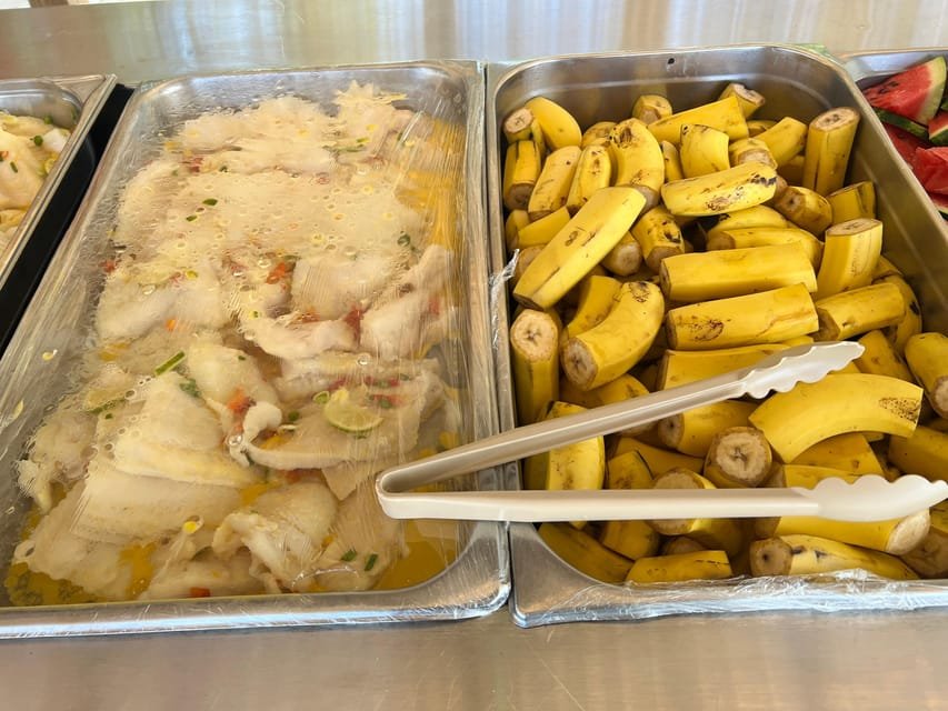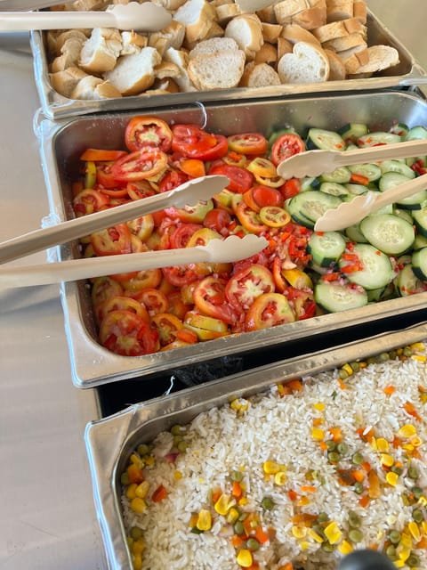 At 1:00 p.m., we will meet at Palmera Turística beach to recharge our batteries with a buffet lunch where you can eat pasta, salads, and rice. Enjoy!
